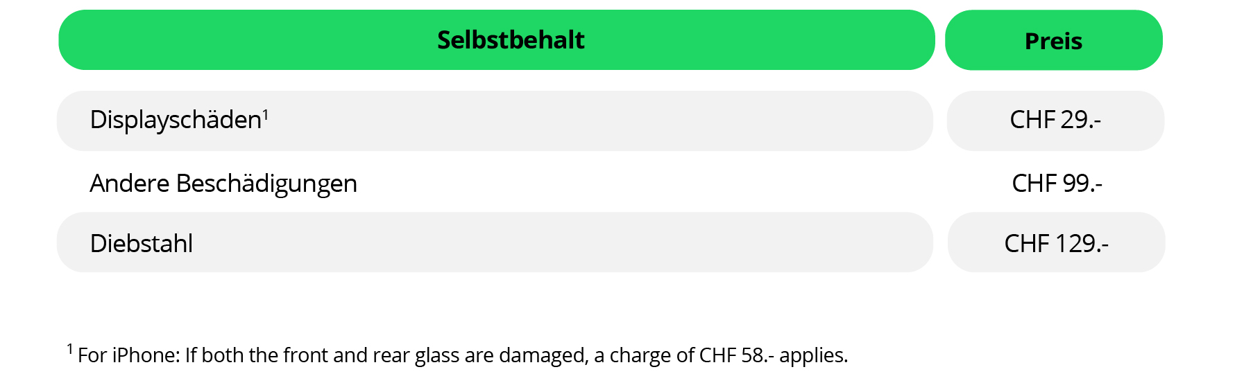 Wenn Du später ein neues Gerät mit Deinem Salt Abo kaufst und Deine Protect- oder Protect+-Versicherung beibehältst, wird der Versicherungsschutz automatisch auf das neue Gerät übertragen und ersetzt das zuvor versicherte Gerät.
