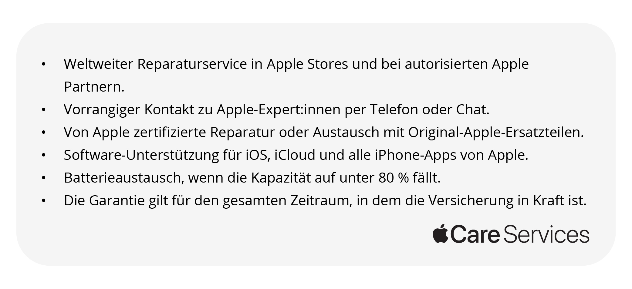✔ für iPhone: AppleCare Services integriert
