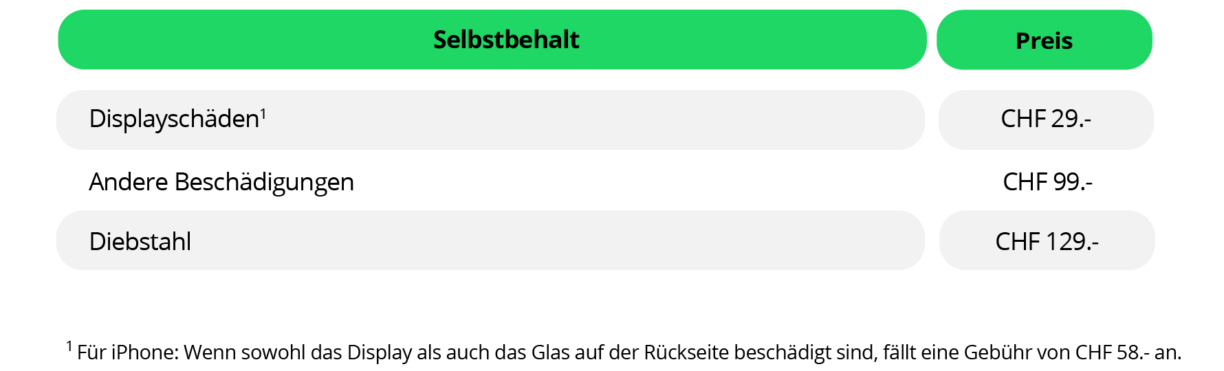 Wenn Du später ein neues Gerät mit Deinem Salt Abo kaufst und Deine Protect- oder Protect+-Versicherung beibehältst, wird der Versicherungsschutz automatisch auf das neue Gerät übertragen und ersetzt das zuvor versicherte Gerät.