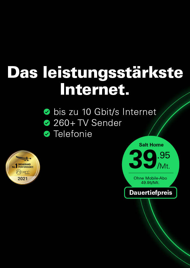 Gute Neuigkeiten: 3 Millionen Schweizer Haushalte dürfen sich auf den ultraschnellen Salt Home Glasfaserinternetzugang freuen, und Du bist einer davon! An Deiner Adresse wird in den nächsten Monaten Salt Home verfügbar sein!