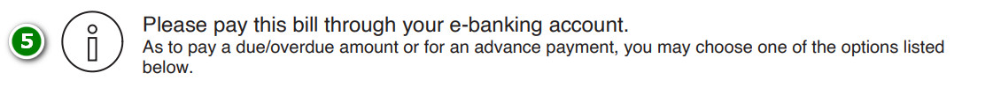 Amount due : amount to be paid for this bill by the date indicated. In case of payment in advance and overpayment, the balance will be in your favour and will be deducted from the total amount of your bill.