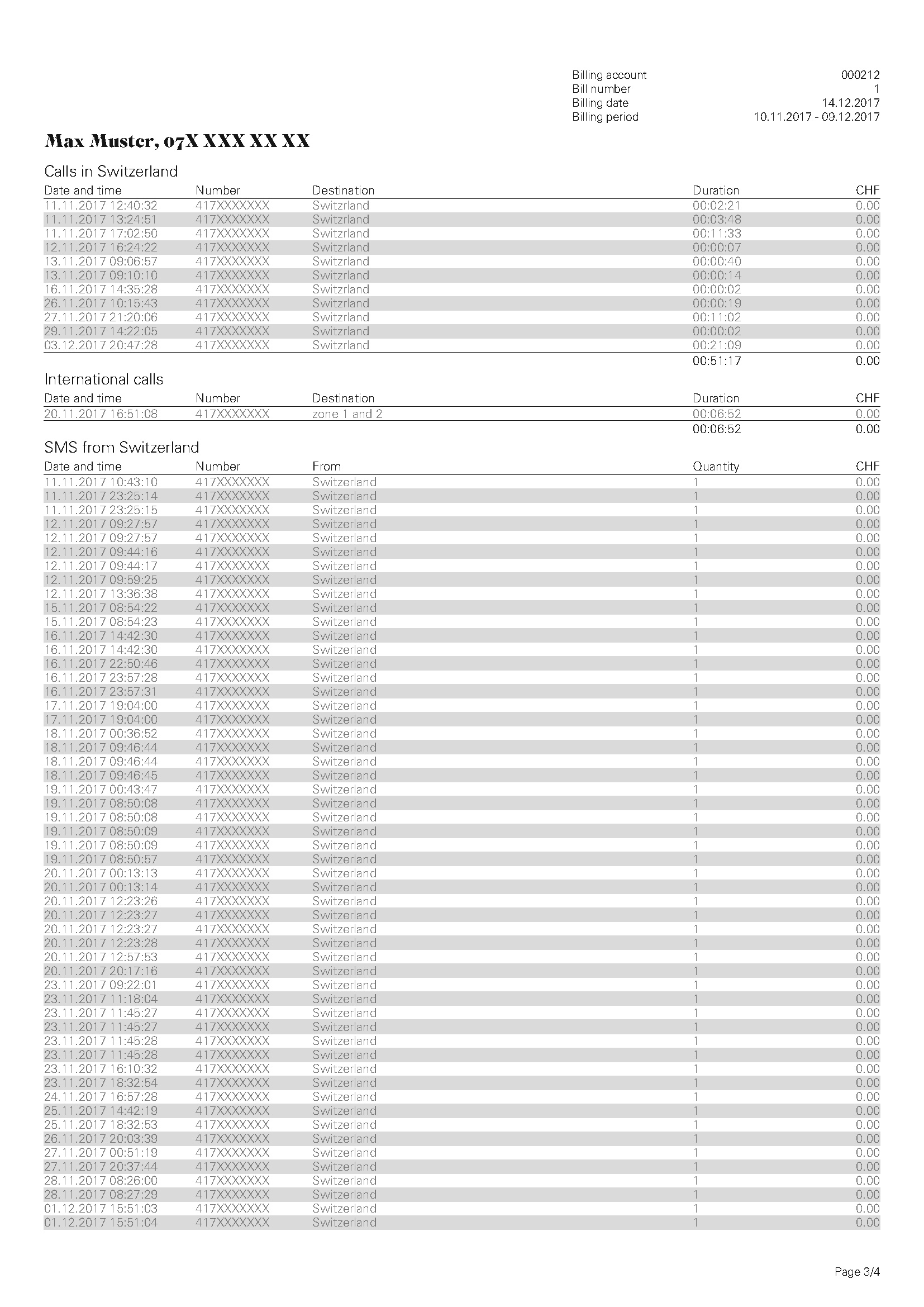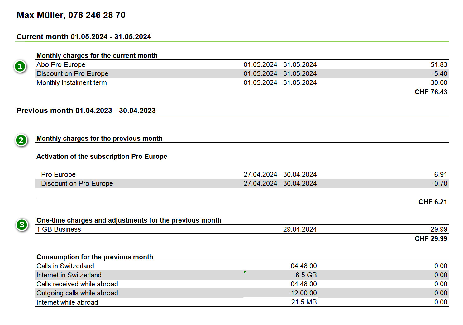 | Paper bill (summary) | CHF 3.95 per invoice |