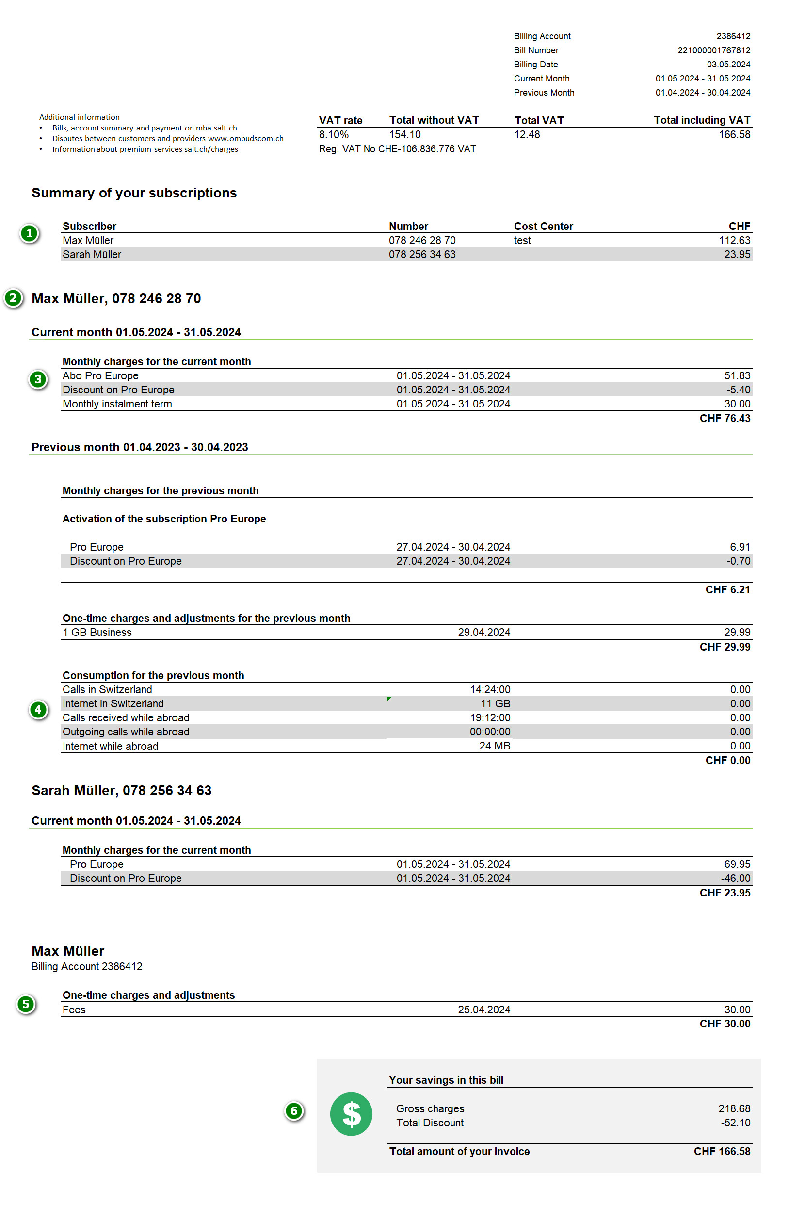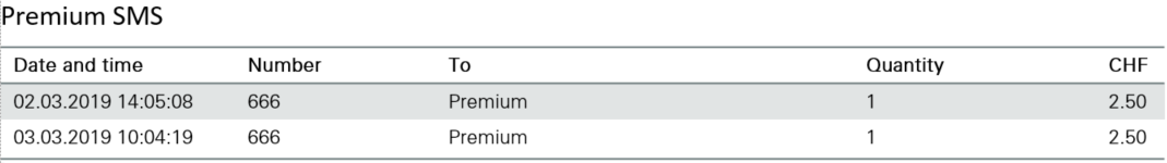 | Paper bill (detailed) | CHF 5.- per invoice |