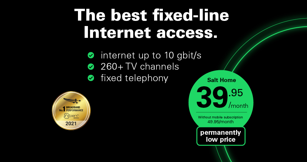 Good news: 3 million Swiss households will be able to benefit from the ultra-fast Salt Home fiber internet access, and you are one of them! Your address will be eligible for Salt Home in the next few months!